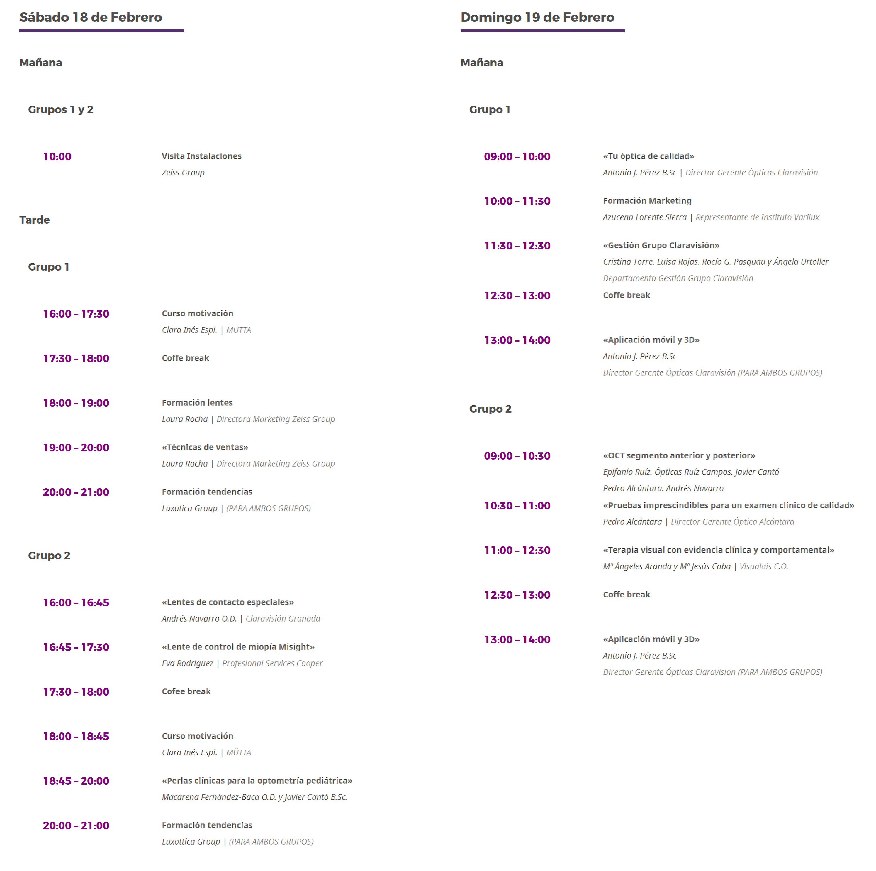 El Fórum ClaraVisión apuesta por la excelencia en materia de formación, la actualización de nuestros profesionales para estar al día en novedades, tecnología y un sector que está en constante evolución. Apostamos por ponentes de reconocido prestigio a nivel nacional dentro del campo de la optometría y este año además incluimos la parte de negocio y finanzas. Se trata de una formación principalmente práctica, que los participantes podrán aplicar inmediatamente al terminar el fórum.