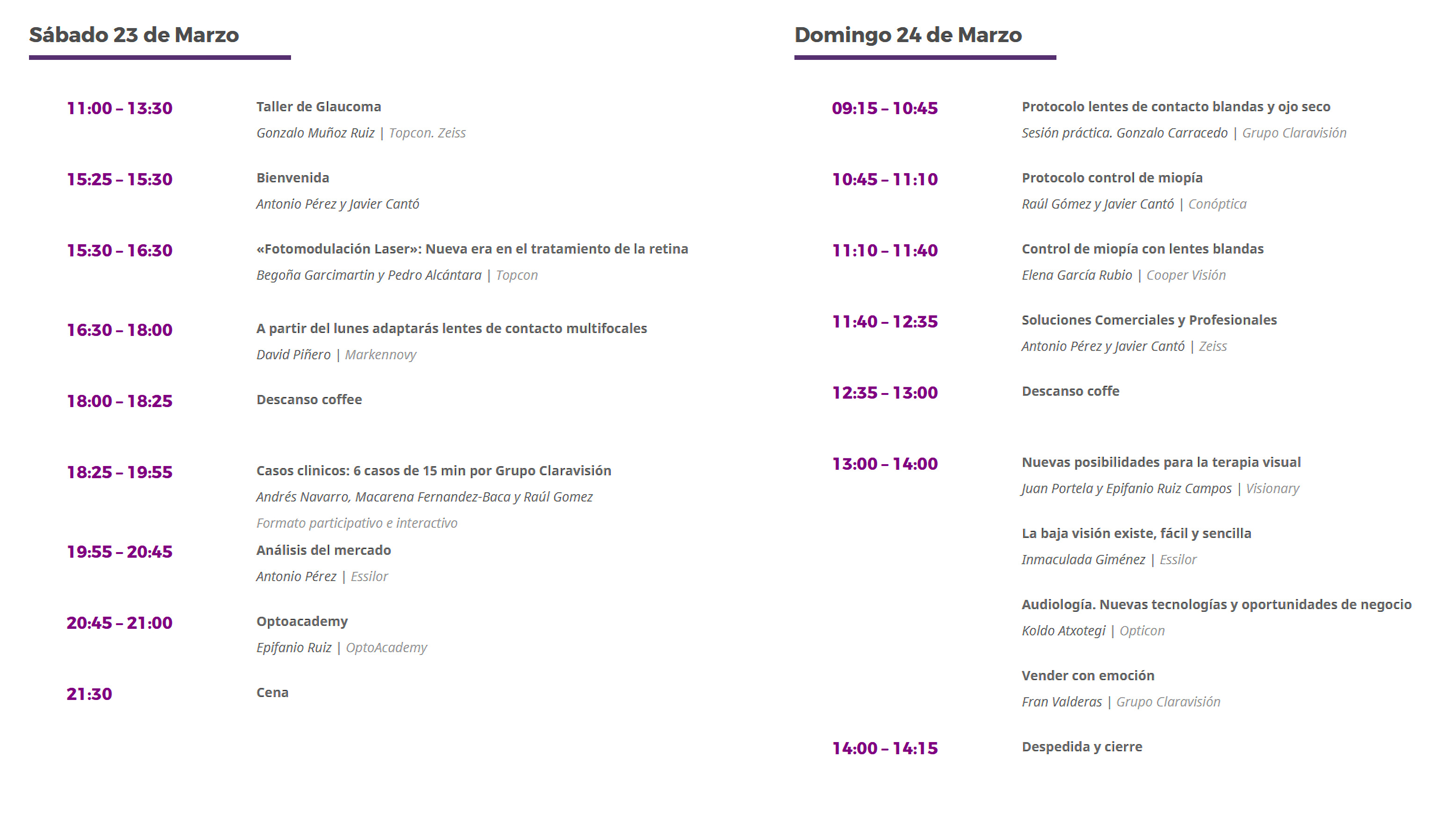 El Fórum ClaraVisión apuesta por la excelencia en materia de formación, la actualización de nuestros profesionales para estar al día en novedades, tecnología y un sector que está en constante evolución. Apostamos por ponentes de reconocido prestigio a nivel nacional dentro del campo de la optometría y este año además incluimos la parte de negocio y finanzas. Se trata de una formación principalmente práctica, que los participantes podrán aplicar inmediatamente al terminar el fórum.